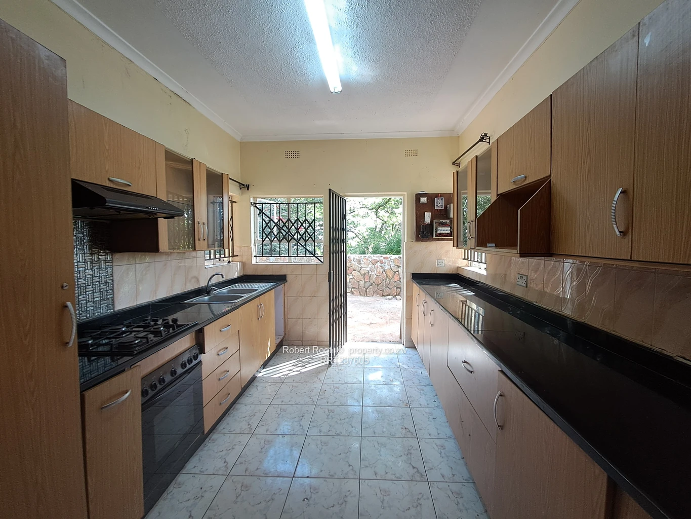 The house comes with a fitted kitchen with gas stove and ample cupboards. The lounge and dining are spacious and open up to a verandah leading to a lush garden.