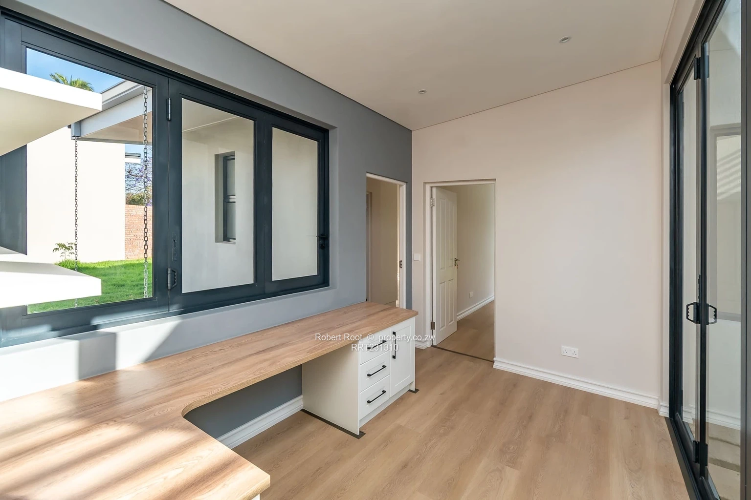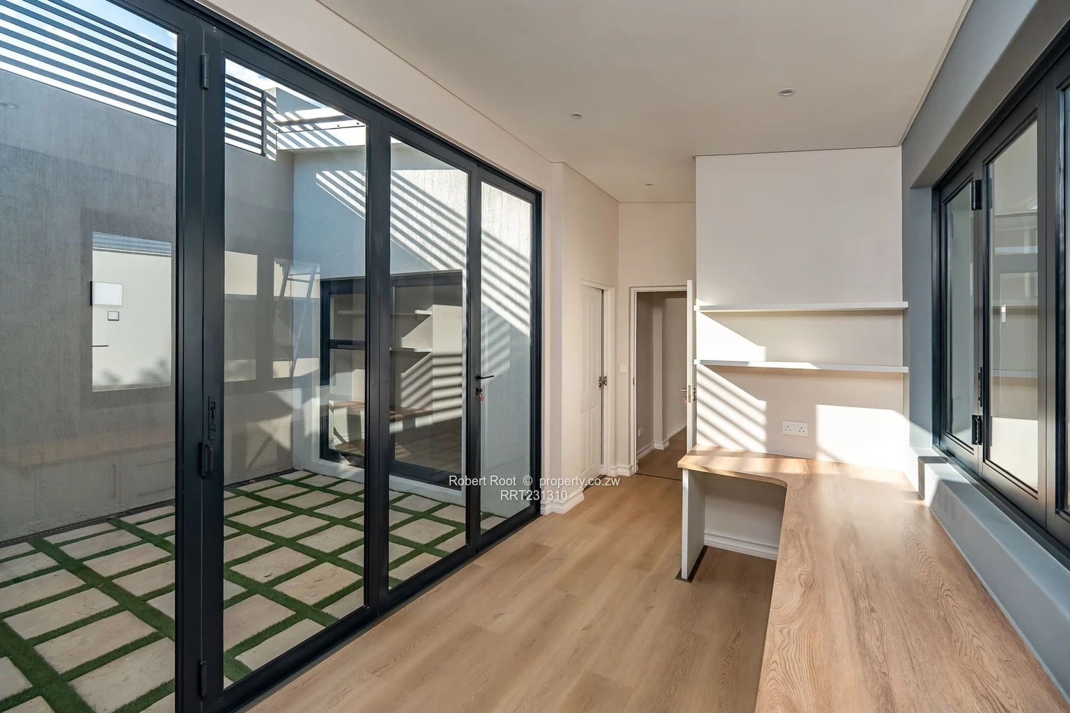 Discover this very neat newly built 3 Bed Family Cluster Home located in the heart of Newlands, Harare. The property boasts a modern design with clean lines and ample natural light filtering through large windows, enhancing its welcoming atmosphere.