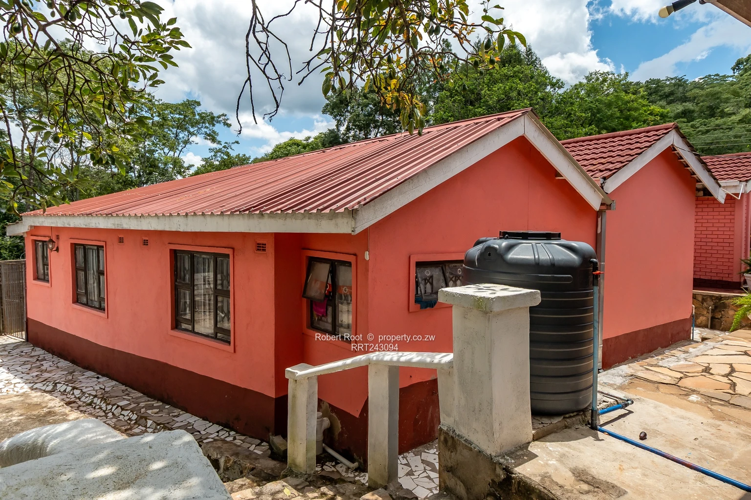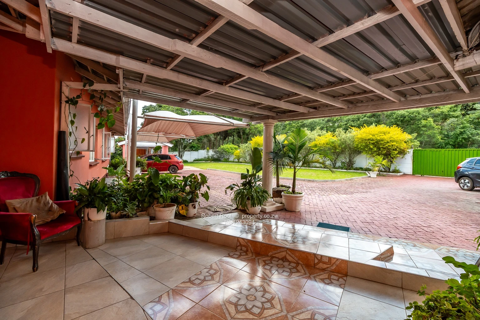 Spacious 4-bedroom, 2-bath family home for rent in desirable Kambanji, Harare North, set on a generous 4,000 m² stand. The single-level residence sits beneath a red-tiled roof surrounded by mature trees and manicured lawns — perfect for outdoor living and entertaining