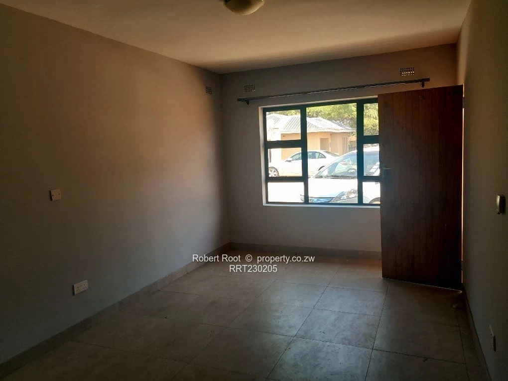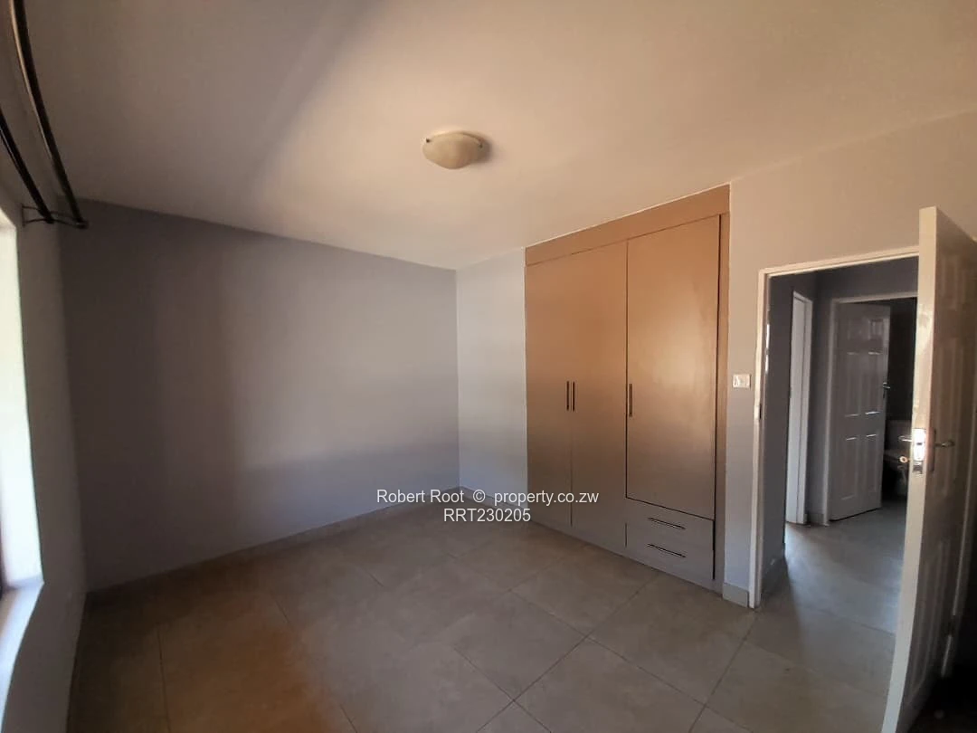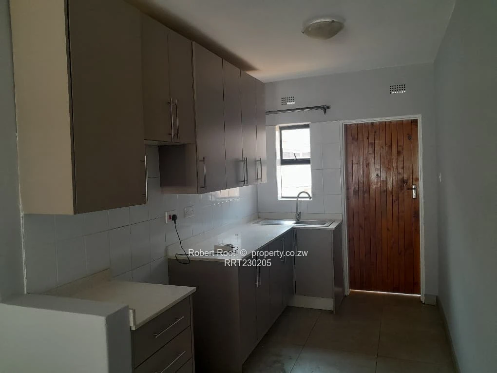 Discover your next home at this stunning flat available for rent in Bluff Hill, Harare. The property greets you with a charming courtyard featuring a well-laid brick paved floor and a large glass sliding door, flooding the interior with natural light.