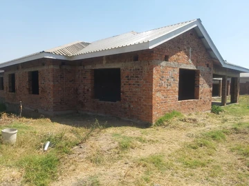 It is an incomplete brick work comprising of: 5 bedrooms with 2 ensuite, 2 lounges, dining room, kitchen, pantry, laundry, bar, 3 garages,title deeds.
