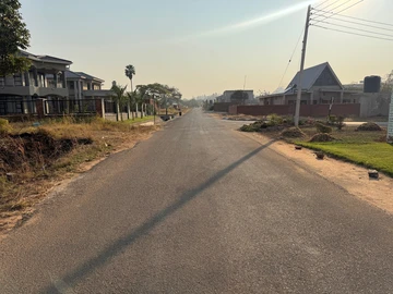 Accessed via a well-maintained road, the property is situated amidst a blend of residential projects and vacant lots, providing ample potential for various developments. Nearby, a contemporary multi-story home showcases the expected aesthetics of the locality, with its modern design and landscaped gardens enhancing the neighborhood's appeal.